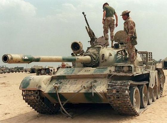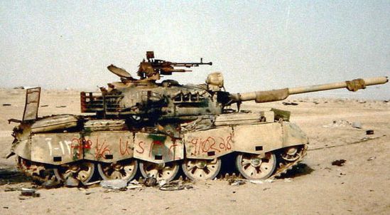 在1991年波灣戰爭中,被聯軍擊毀的伊拉克69-2A坦克。