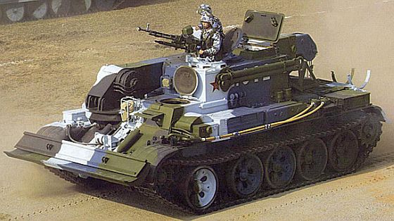 以69式底盤開發的88式雙聯裝57mm自走防空砲。 此車於1980年開始研發,1988年完成設計定案。此防空砲車的系統架構十分簡單,以69式的底盤搭配59式雙聯裝57mm防空砲塔,射控裝備僅包括光學瞄準儀與G121A雷射測距儀,其設計理念與俄羅斯ZSU-57-2類似,顯然需要友軍雷達指揮單位配合才能有效作業。 88式37mm防空砲(PGZ-88) 以69-2的底盤搭配76式37mm防空砲塔而成,此砲塔於1970年代末期開始研發,1988年完成設計定案,不過最後並未進入解放軍服役。76式防空砲塔由鋼甲焊接而成,配備一座旋轉搜索雷達、光學瞄準儀與雷射測距儀,以及一座雙聯裝37mm防空機砲。由於另有專文介紹88式,在此不多做贅述。