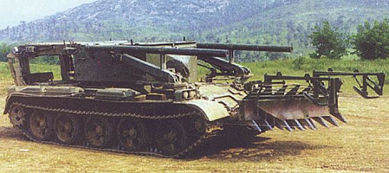 由79式底盤衍生而成的GSL-130地雷處理車。 結語 作為中共第一種自行研製的主戰坦克,69式雖然有許多無奈,也明顯地缺乏前瞻性,但仍不失為一種成熟可靠的設計,歷年的發展也為80式等中共第二代 主戰坦克奠定基礎,在中共坦克發展史上佔有重要的一席地位。 |