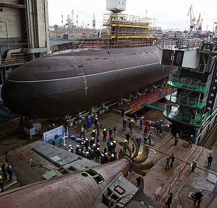 一艘俄羅斯Kilo潛艦在船台建造,此時圍殼尚未安裝。