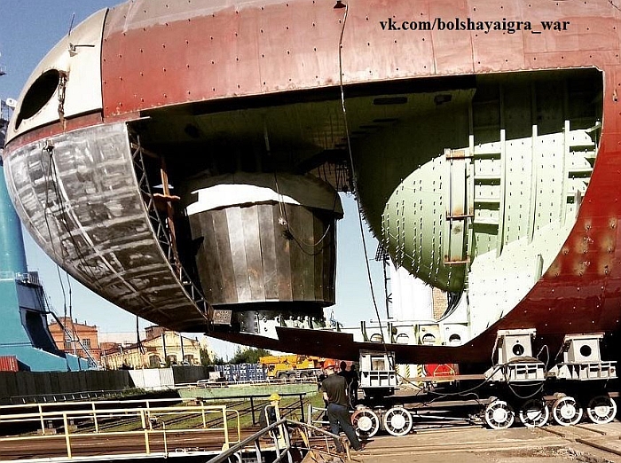 有一個大型偽裝網,底下就是施工中的頓河畔羅斯托號。