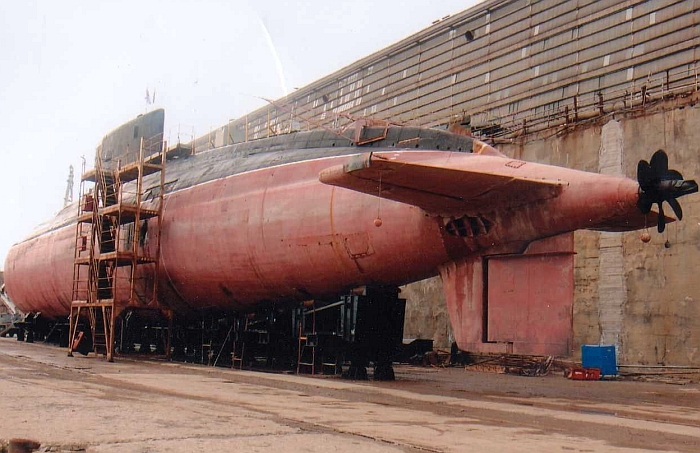 建造中的Kilo潛艦,此時圍殼跟推進器都還沒有安裝。