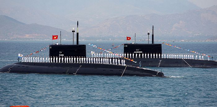 2015年5月7日越南海軍節閱艦式上的兩艘Kilo 636MV河內級潛艦