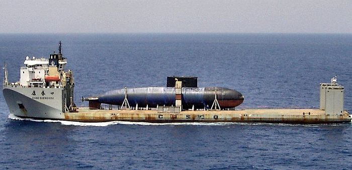 中國訂購的兩艘Kilo 636潛艦由潛舉船運往中國。