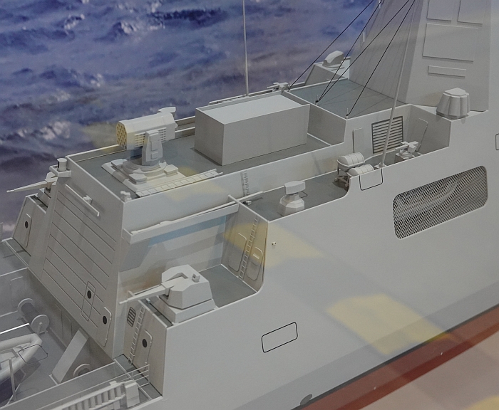 2023年5月3日新家坡國際海事防務展(IMDEX 2023)展出的MEKO A300巡防艦模型中部。