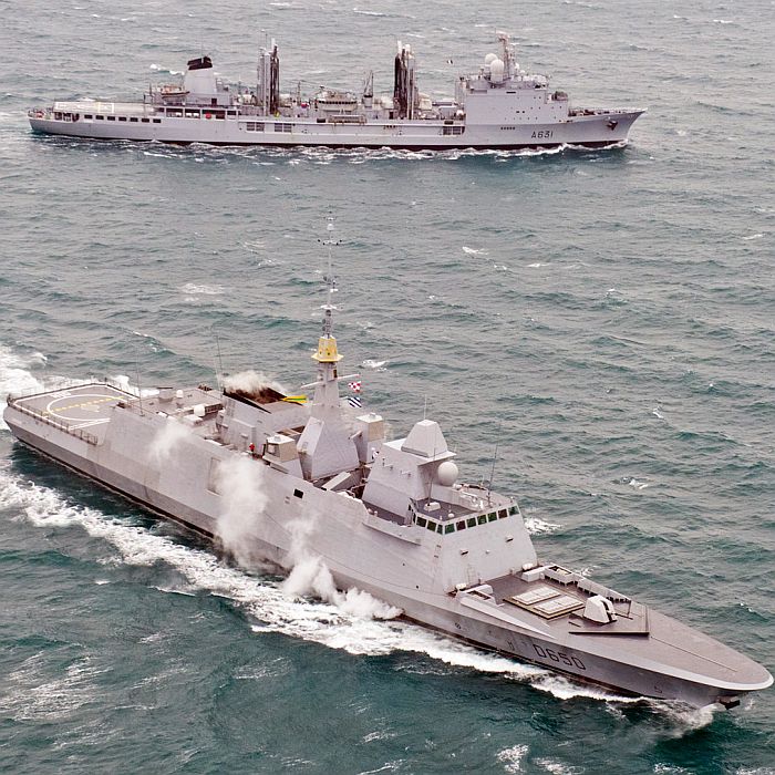 阿基坦號與法國海軍杜倫斯級(Durance class)補給艦Somme(A631,後)