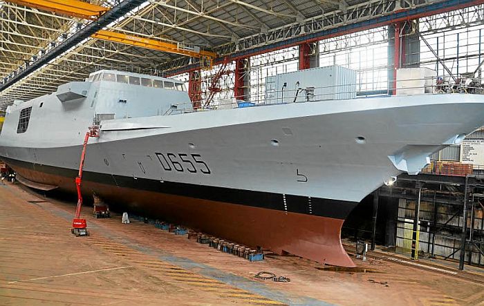 在洛里昂造船廠建造的法國海軍最後一艘FREDA防空艦(第二艘)的分段,這是法國海軍訂購的最後一艘