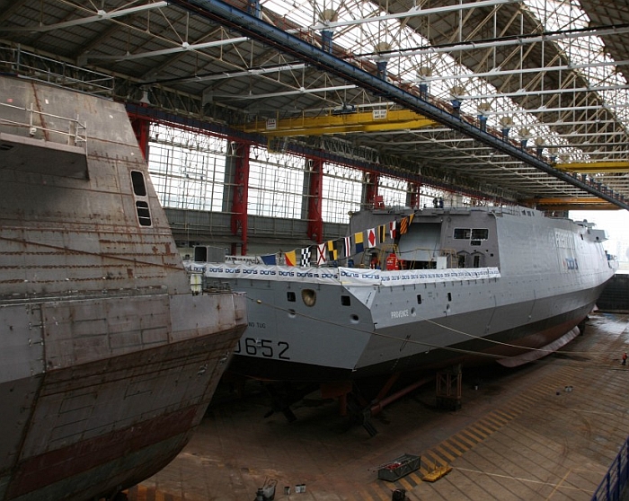 正在DCNS洛里昂船廠建造的FREMM普羅旺斯號(Provence D652,右)與