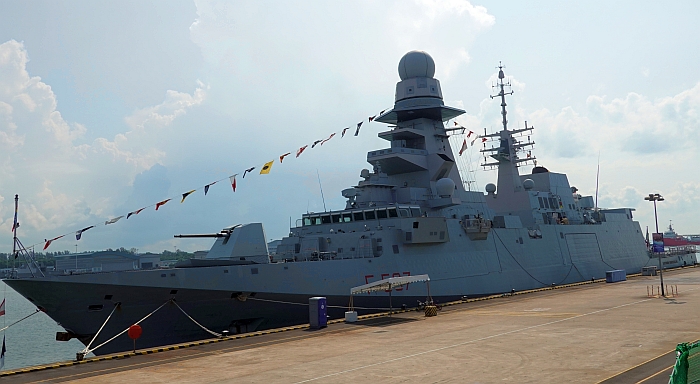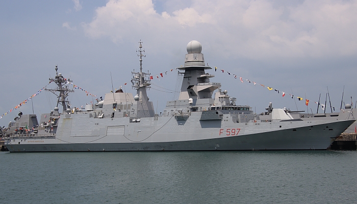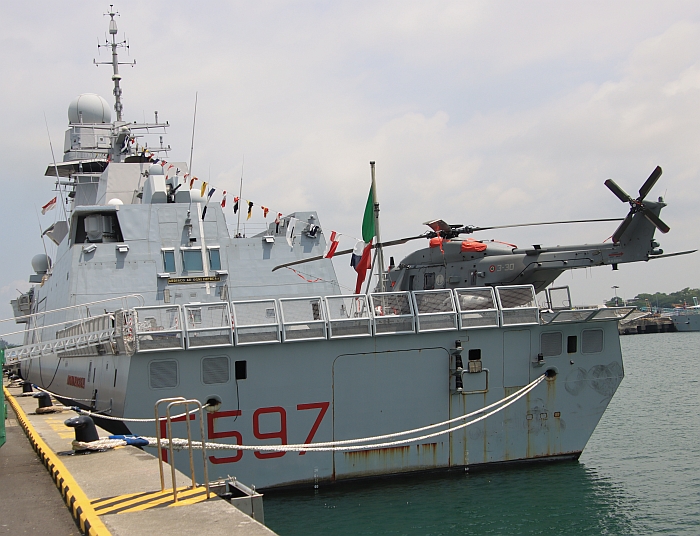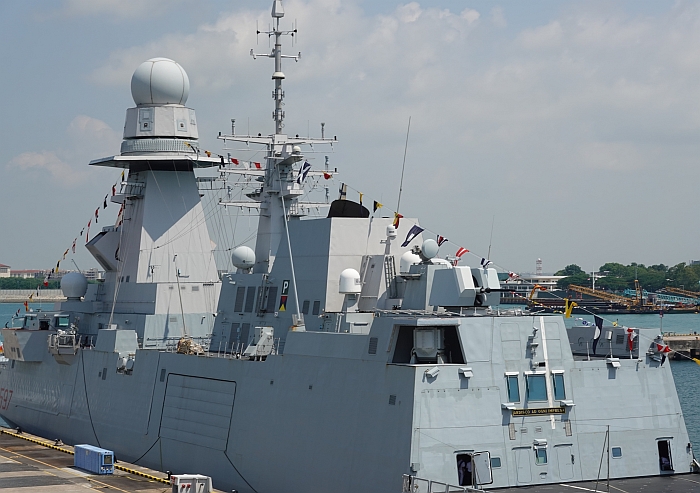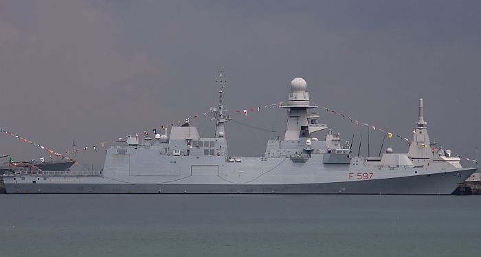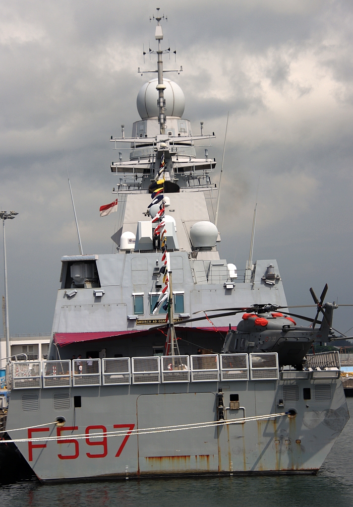 (上與下二張)意大利FREMM通用型巡防艦Antonio Marceglia (F597)停靠新家坡樟宜軍港。