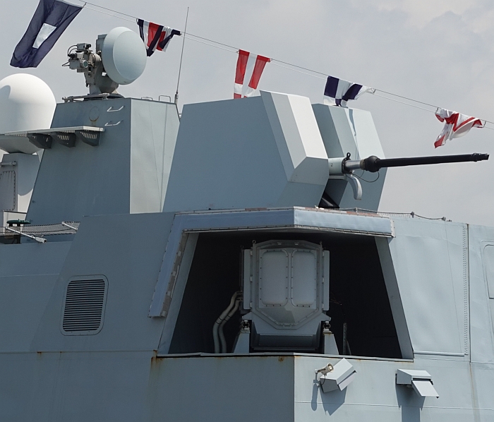 以及Selex ES NA-25X DARDO-F光電/雷達火砲射控系統。攝於2025年5月7日 新家坡國際海事防務展