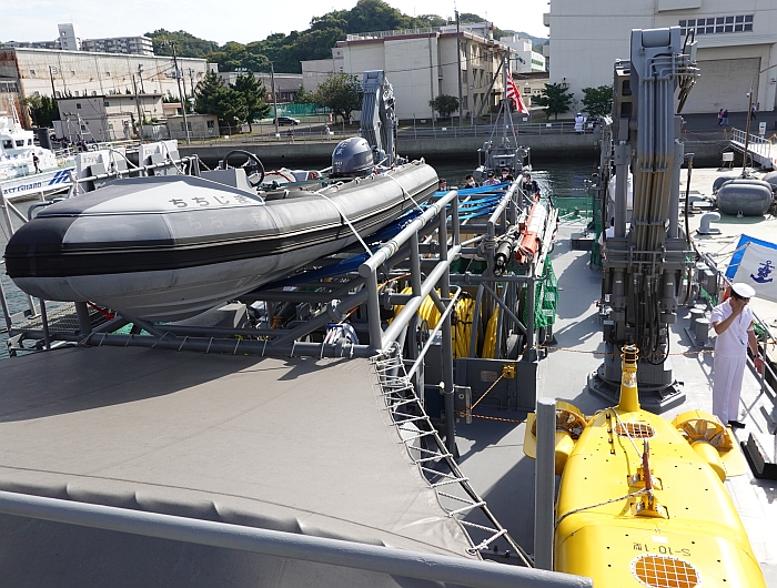中央上部搭載潛水作業人員的RHIB快艇。攝於2023年10月14日橫須賀基地。