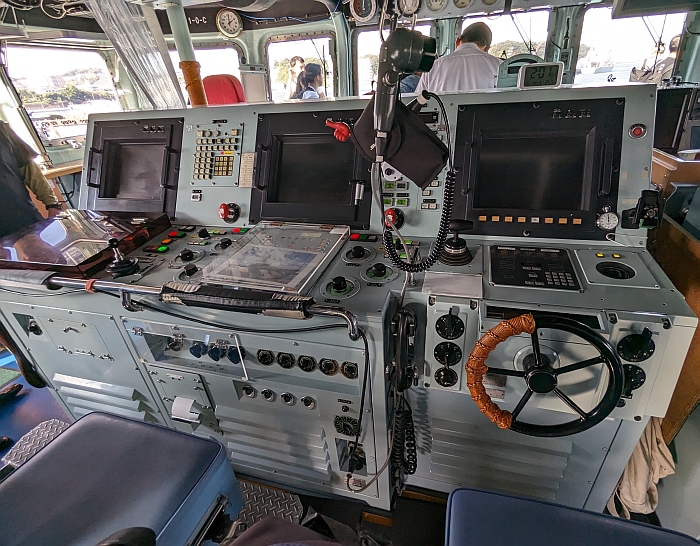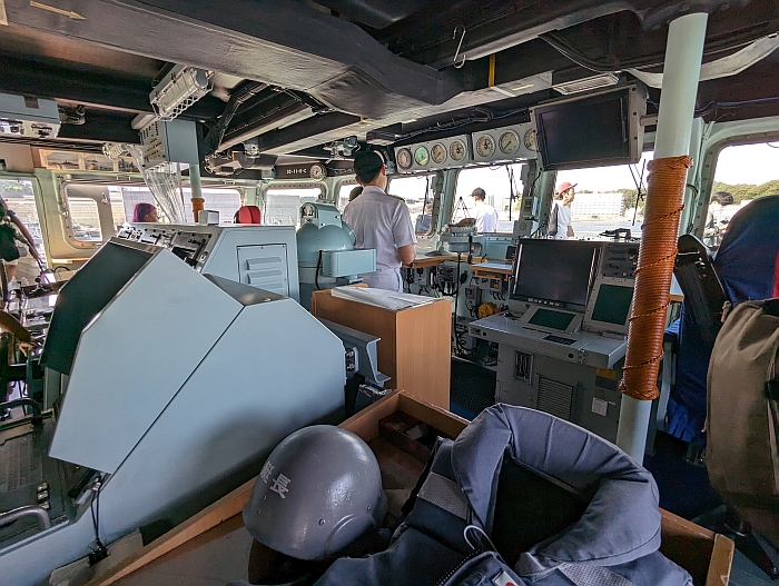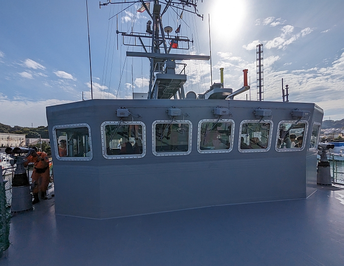 (上與下)江之島級掃海艇二號艦父島號(MSC-605)的艦橋。攝於2023年10月14日橫須賀基地。