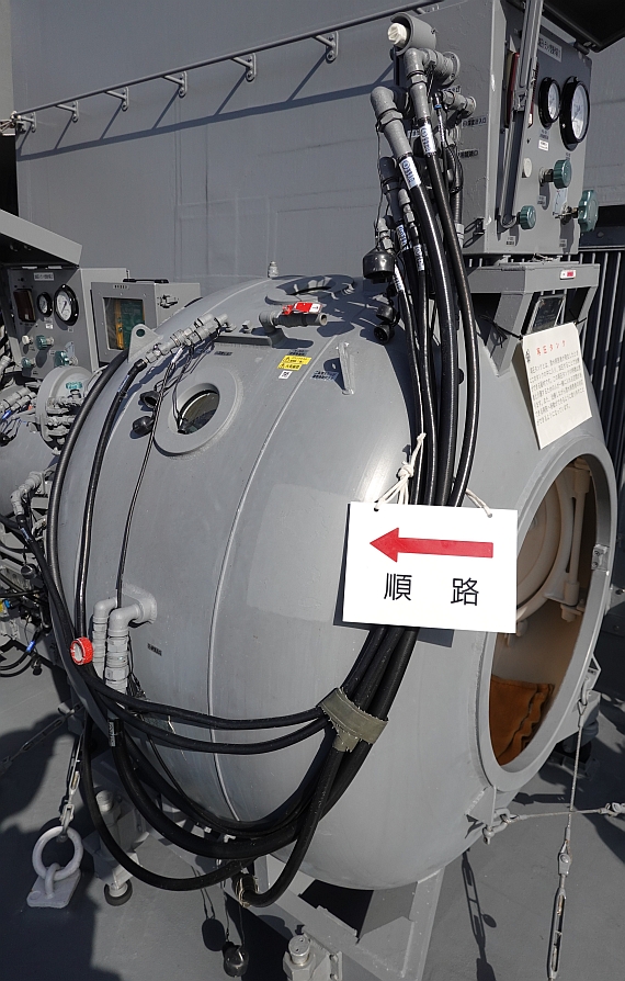 父島號(MSC-605)上用來支援潛水人員的加減壓艙。攝於2023年10月14日 橫須賀基地。