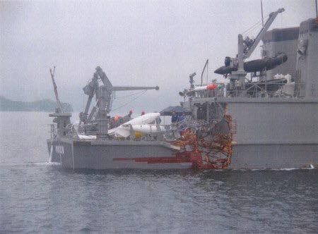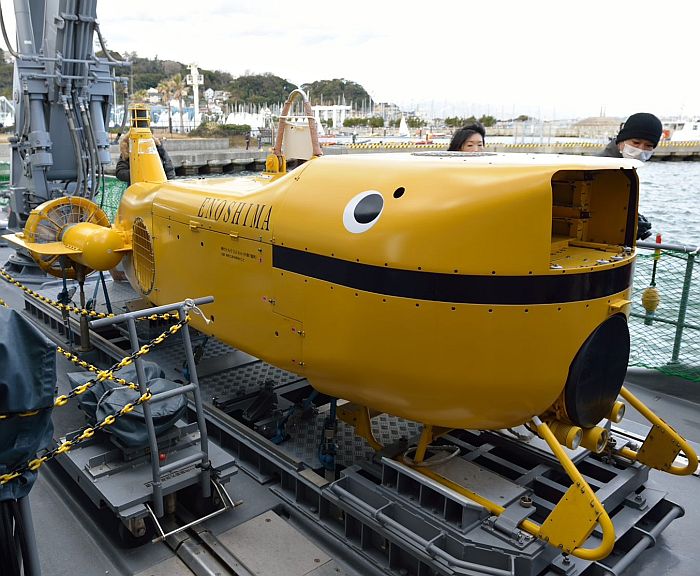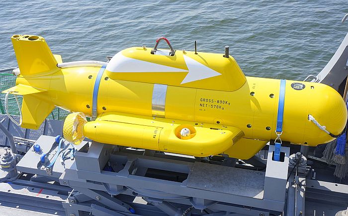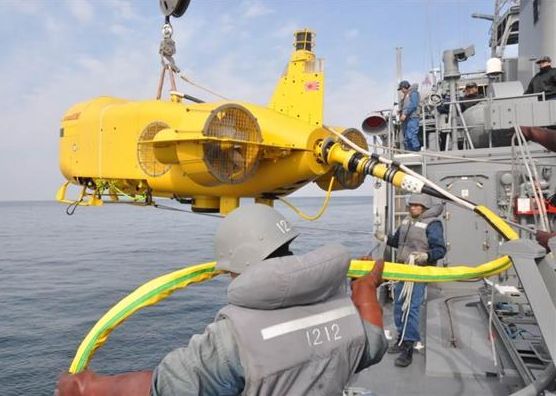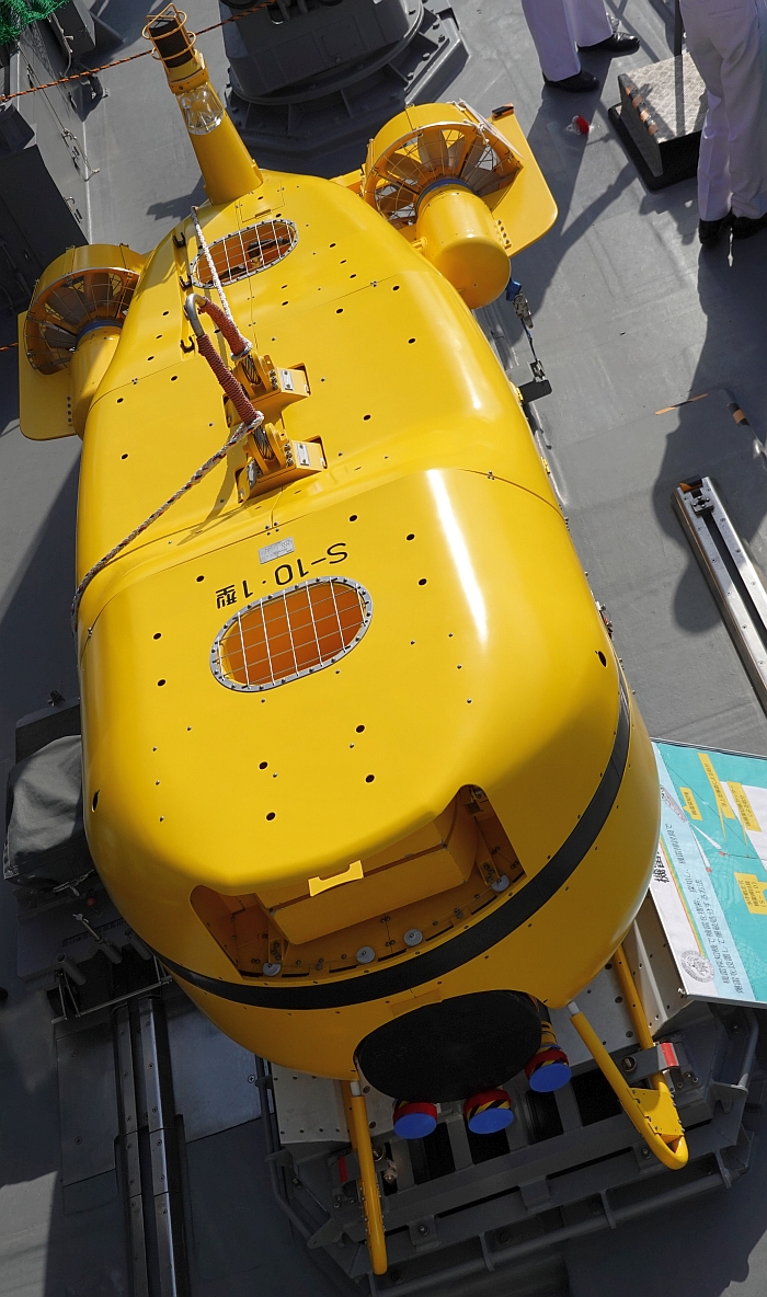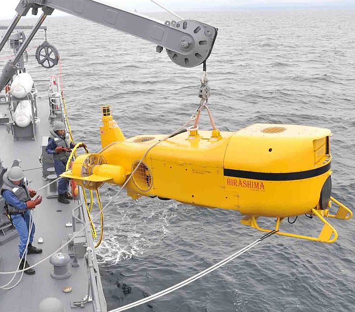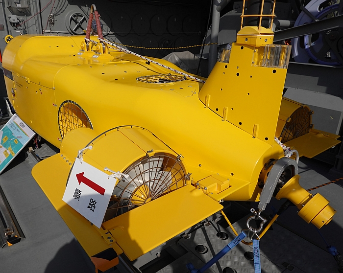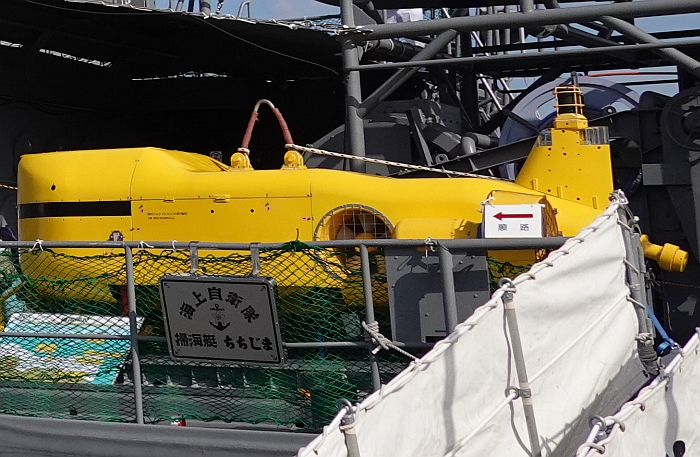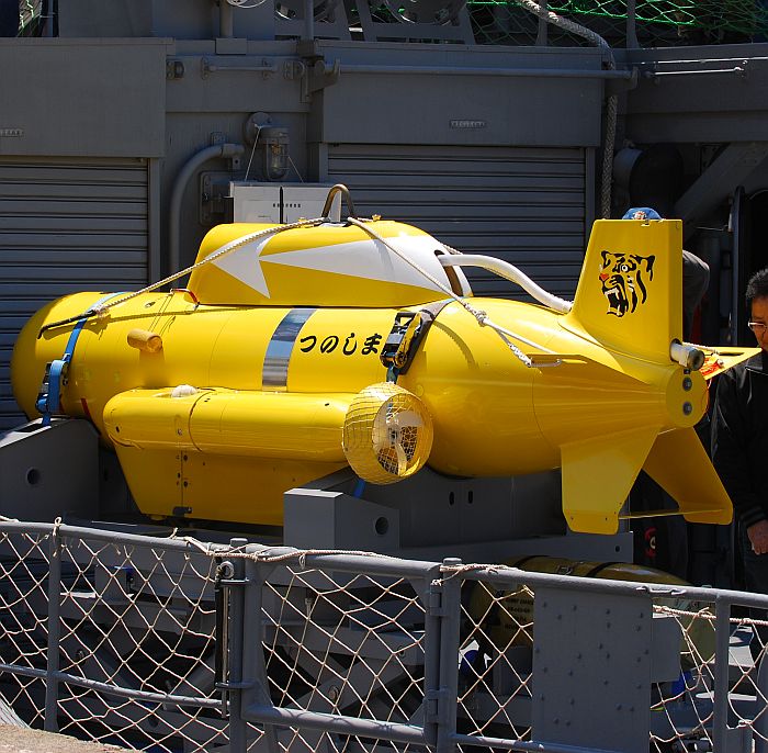 (上與下二張)江之島級掃海艇二號艦父島號(MSC-605)的S-10遙控獵雷載具。