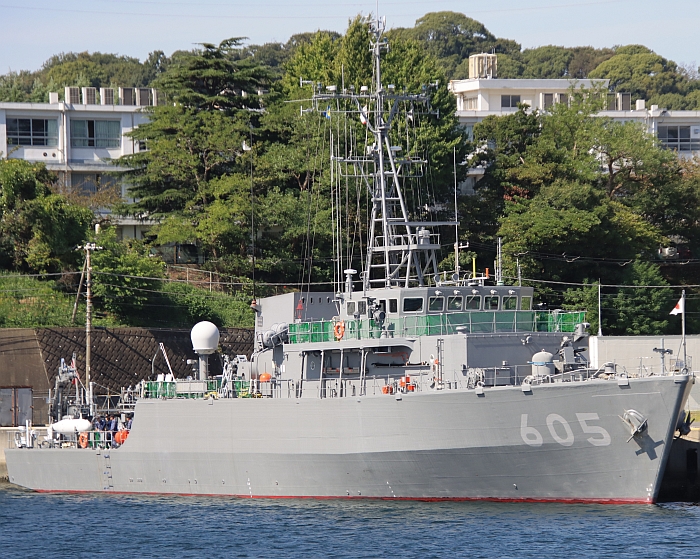江之島級掃海艇二號艦父島號(MSC-605),攝於2023年10月13日橫須賀基地。