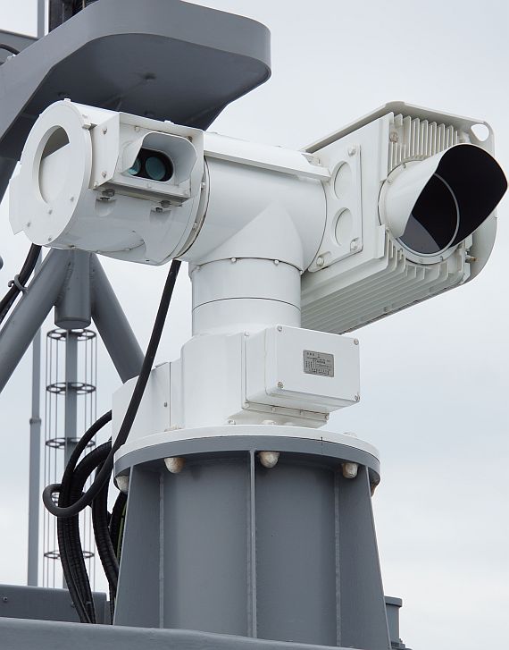 初島號(MSC-606)艦橋頂部用來導控20mm遙控機砲的光電/紅外線瞄準儀