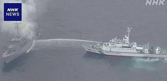 11月10日晚間,火勢從宇久島號機艙冒出並蔓延全艇,海上保安廳船隻仍在旁灑水灌救。