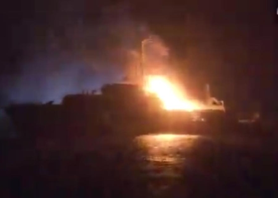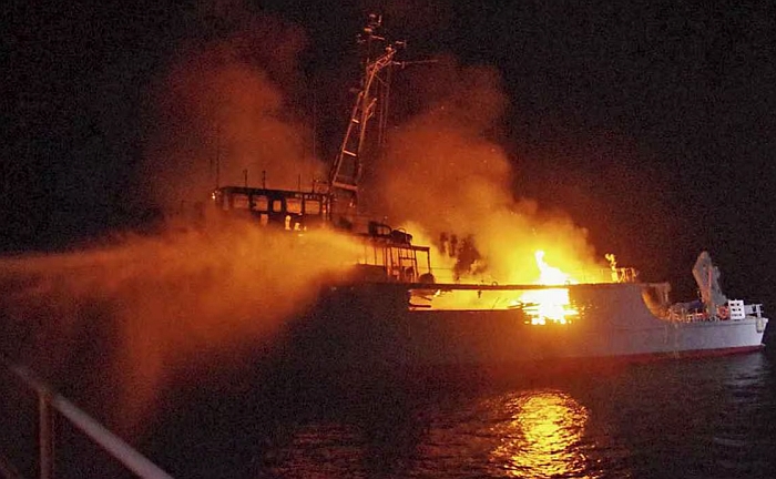 11月10日晚間,明火從宇久島號機艙冒上甲板,隨後延燒全艇