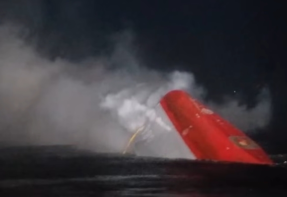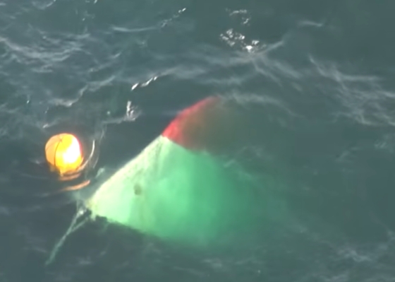 11月11日凌晨0時50分左右,宇久島號翻覆,艇尾沉沒,此時艇首仍浮在水上。