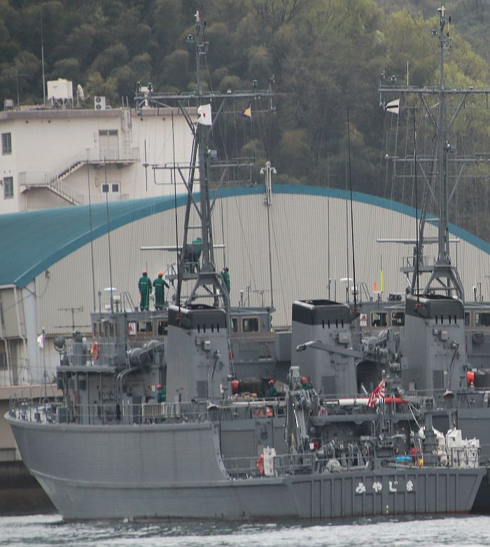 (上與下)菅島級掃海艇宮島號(MSC-690)。攝於2018年4月6日吳基地。