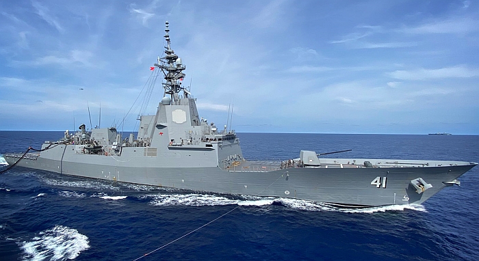 霍巴特號與美國海軍柏克Flight 2A飛彈驅逐艦約翰.芬恩號(USS John Finn DDG-113,背景)一同航行。