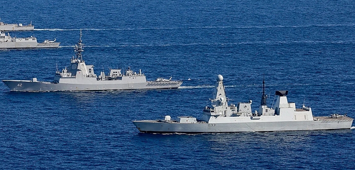 皇家海軍Type 45驅逐艦不屈號(HMS Dauntless D33,右)編隊航行