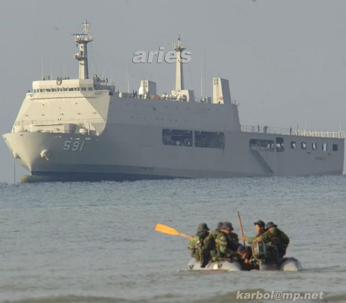 印尼的韓製塞芒卡灣級(Teluk Semangka cass)戰車登陸艦,此為KRI Teluk Mandar(514)。