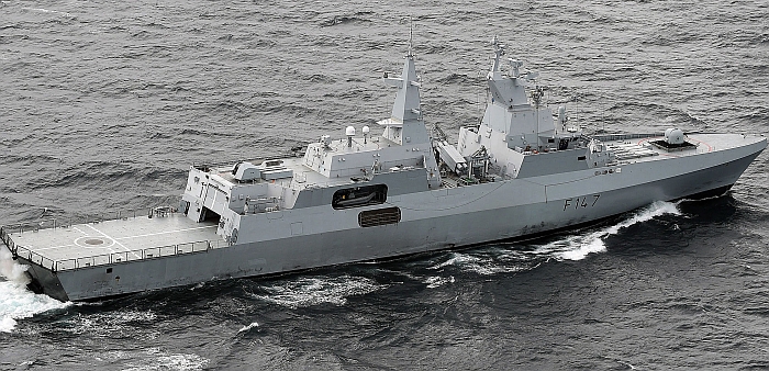 南非首艘MEKO-A200SAN勇敢級巡防艦阿瑪托拉號(F-145)的艦尾。
