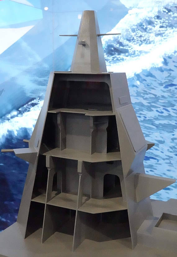 、上層結構以及推進系統則更多傾向SAAB方案,包括SAAB提供的碳纖維強化塑膠複合材料(carbon fibre-reinforced plastic)的前部上層船樓以及整合桅杆系統,以及SAAB提供的感測和戰鬥管理系統。