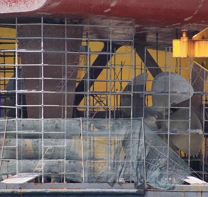 五葉片螺旋槳與推進軸。攝於2025年8月16日。