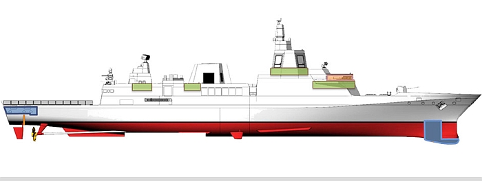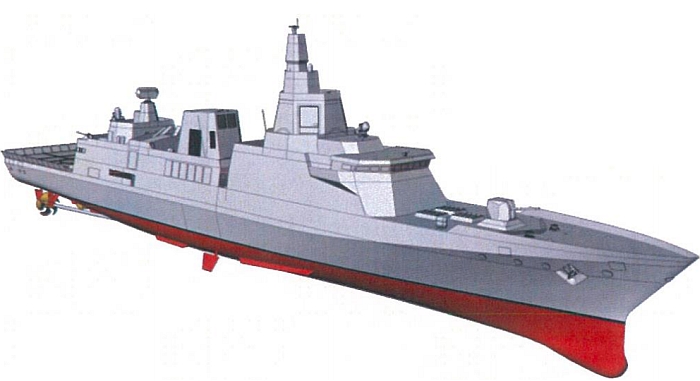 2016年6月20日台灣海軍公布的未來造艦計畫中的「新一代飛彈巡防艦」示意圖,將取代成功級、康定級等