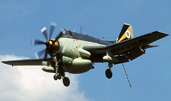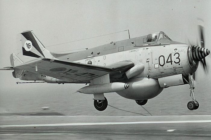 搪鵝螺旋槳艦載機,此為AEW3預警構型,機腹設有一具美製AN/APS-20F搜索雷達。