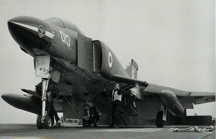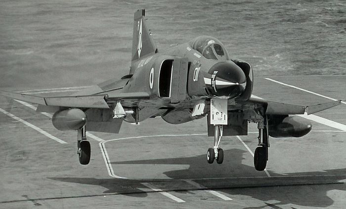 美國授權英國生產的FG.1幽靈式,換裝Roll Royce的噴射發動機。攝於皇家方舟號的甲板。