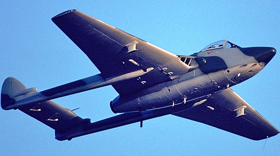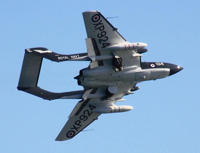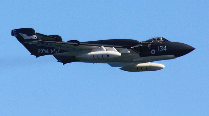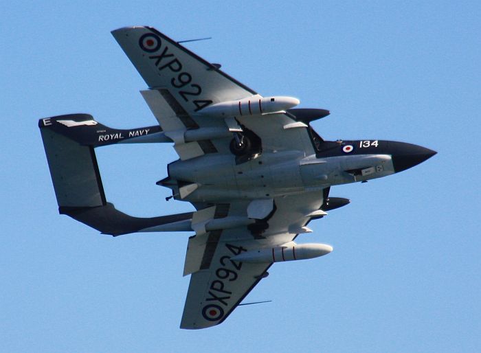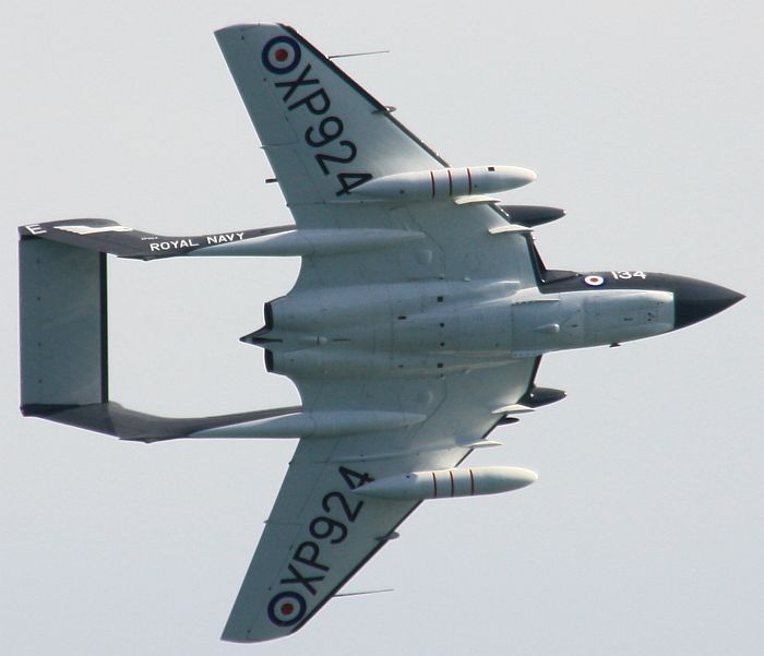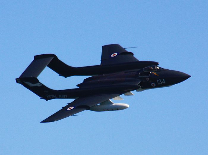 (上與下五張)一架原屬於皇家海軍航空對的海雌狐(Sea Vixen FAW.2)除役後由民間保存並進行飛行表演,