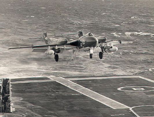 一架降落在鷹號(HMS Eagle R05)的NAS889中隊海雌狐戰機