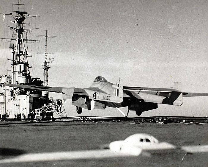吸血鬼式從海洋號起飛,締造史上首次噴射機從航空母艦起飛的紀錄。