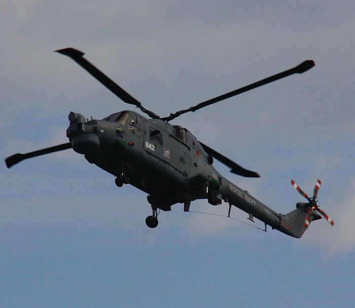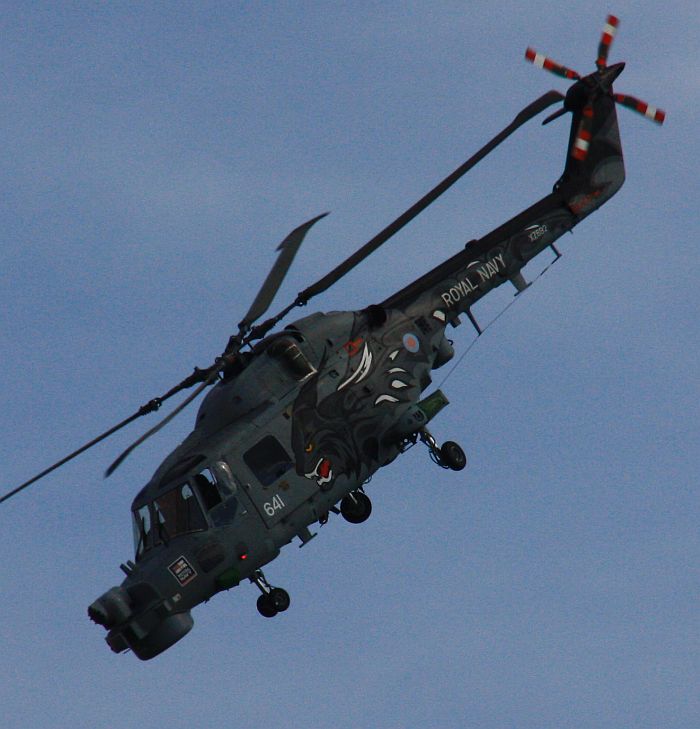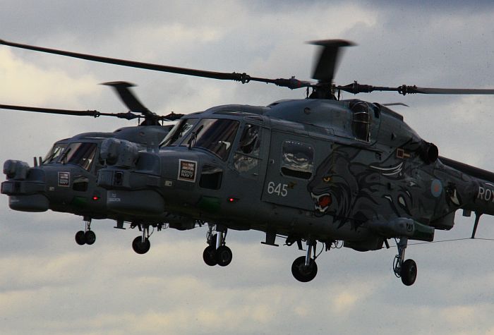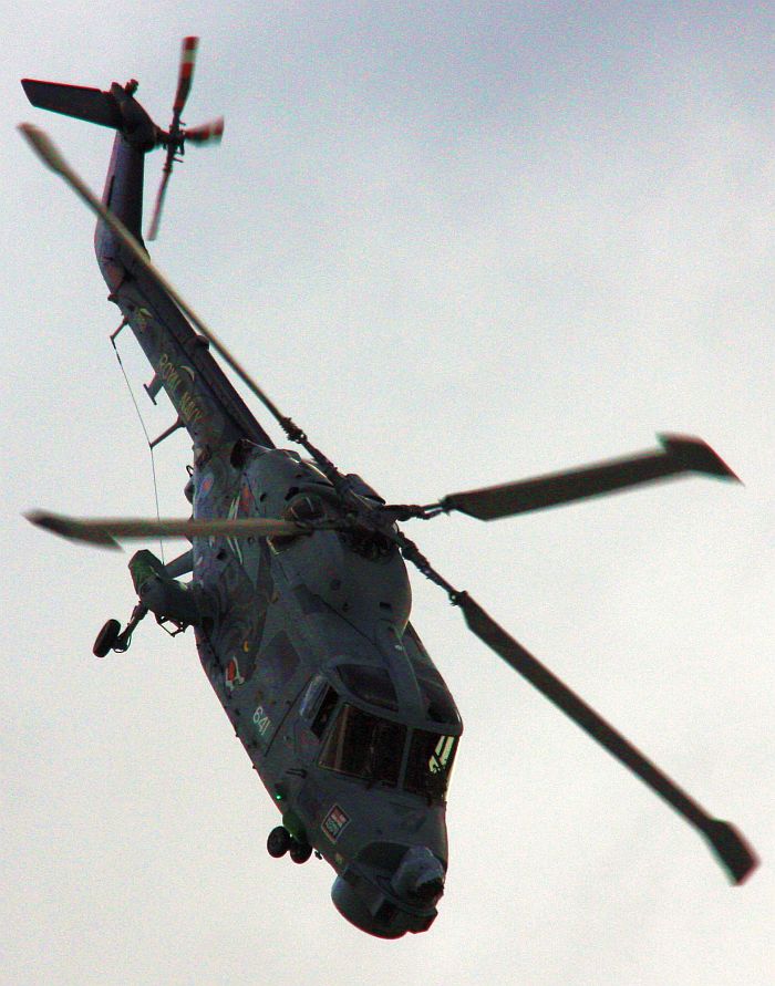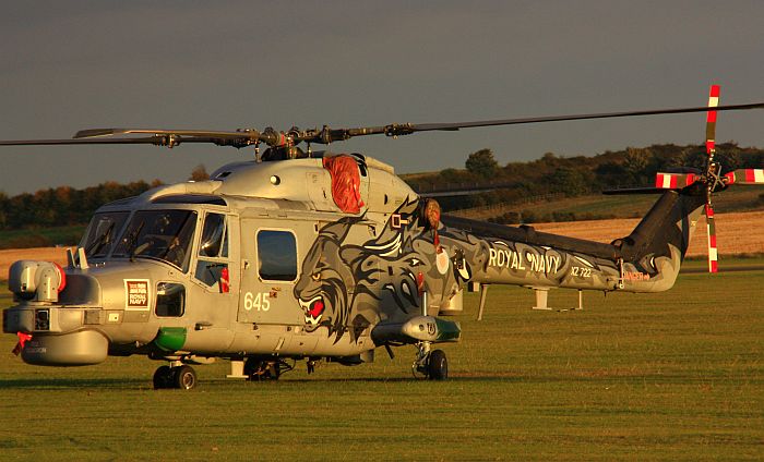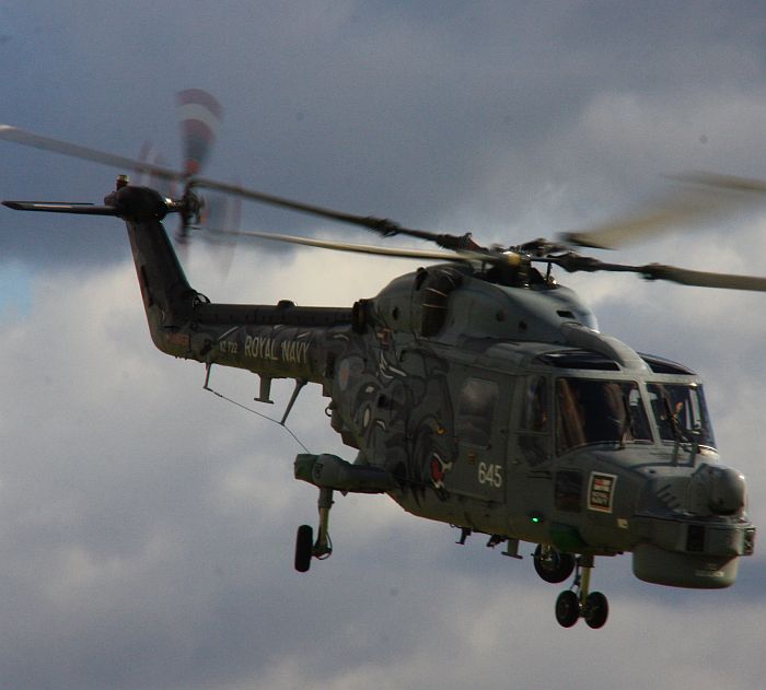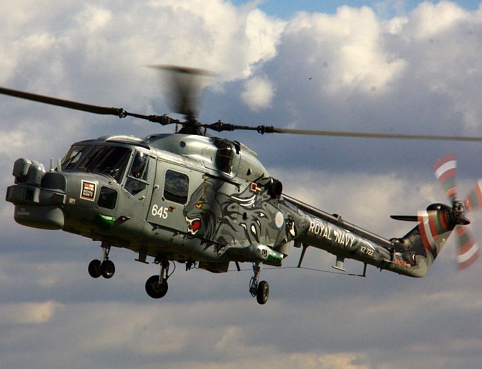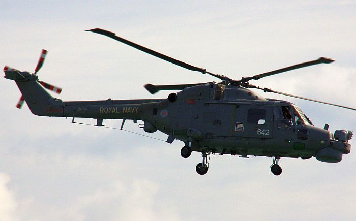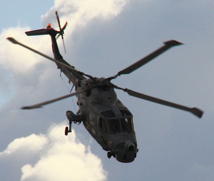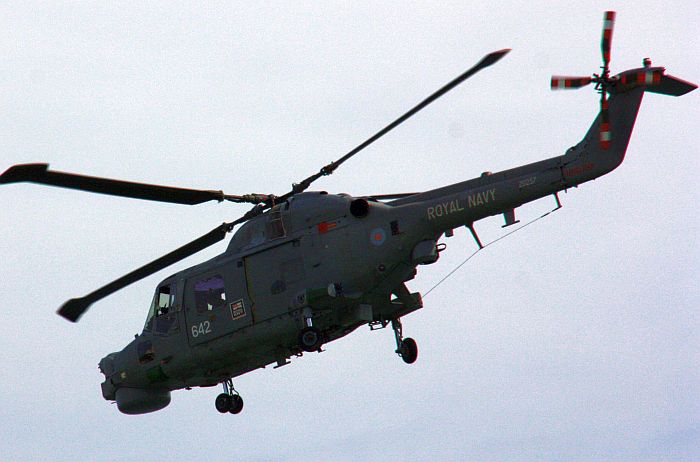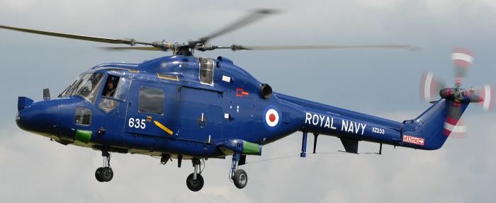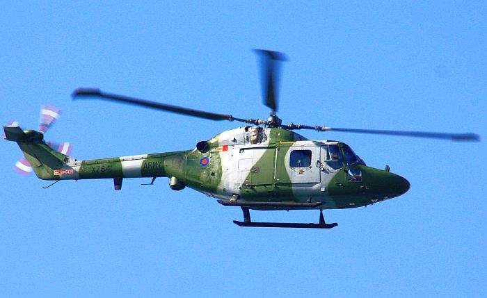 英國陸軍一架山貓(Lynx)直昇機,攝於2012年4月4日樸次茅茲。皇家海軍的大山貓HAS.2反潛直昇機