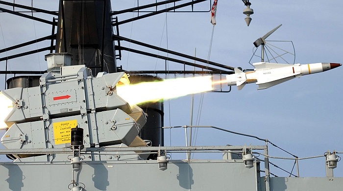 一艘 Type 22巡防艦正發射一枚GWS.25海狼短程防空飛彈