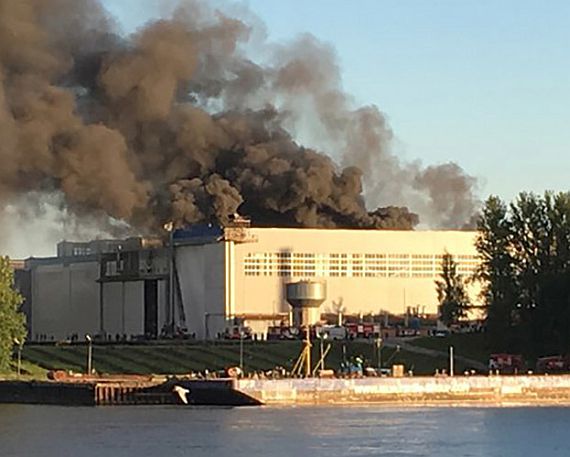 (上與下)在2016年6月7日,Sredne-Nevsky船廠發生火災,原訂在一個月後下水的Project 12700二號艦 Georgiy Kurbatov號的結構也受到波及,導致下水期程延後到2019年。