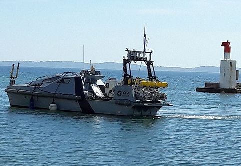 法國ECA Group生產的Inspector-MK2無人水面載具。注意載具艇首的伸縮桅杆裝置ISSS掃描聲納, 艇尾施放回收系統(LARS)則搭載了TOWCA拖曳式側掃聲納。 設計Project 12700時,俄羅斯與西方關係較好,俄羅斯也首次從法國引進軍事技術,因此Project 12700使用法製獵雷裝備;然而2014年烏克蘭政變後俄羅斯併吞克里米亞,西方集體對俄羅斯展開制裁,導致原本法國向俄羅斯出口的軍備(包含兩艘西北風級兩棲攻擊艦)無法交貨;禁運也影響到Project 12700項目,法國原本預定在2015年8月交付Project 12700首艦亞歷山大.奧布可夫號所需的所有獵雷裝備,但最後除了ECA Group集團的Inspector-MK2無人水面載具之外,其他品項都沒有交付,導致亞歷山大.奧布可夫號在2014年6月底下水以後,只能停在碼頭等待裝備。 俄羅斯購買的第一套Inspector-MK2無人水面載具在2015年秋季交付,隨後裝上亞歷山大.奧布可夫號,在2016年底完成系統整合工作,在2017年6月展開初步海上測試,隨後並完成與首艘Project 12700艦上指揮管制系統的軟體整合工作。前三艘Project 12700都會配備ECA Group提供的Inspector-MK2載具。在2017年6月底聖彼得堡國際海事防衛展(International Maritime Defence Show in Saint Petersburg)中,ECA Group的商務總裁Dominique Mallet 表示,該集團會授權並轉移技術在俄羅斯生產Inspector Mk 2無人水面載具以及SEASCAN MK.2遙控載具,並在2019年完成。在2017年7月下旬,ECA Group表示已經向俄羅斯交付第二套Inspector-MK2載具