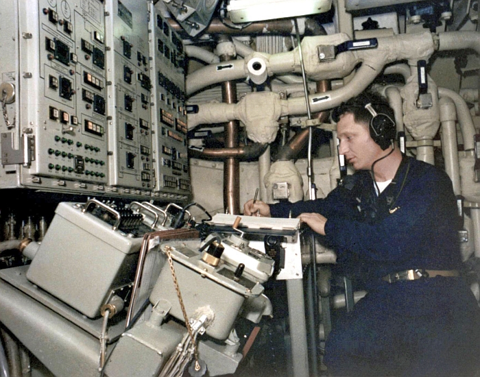 (上與下六張)俄亥俄級核能彈道飛彈潛艦首艦俄亥俄號(USS Ohio SSBN-726)操控台的畫面。攝於1982年。