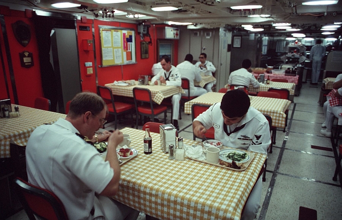 (上與下)俄亥俄級核能彈道飛彈潛艦首艦俄亥俄號(USS Ohio SSBN-726)的餐廳。攝於1982年。