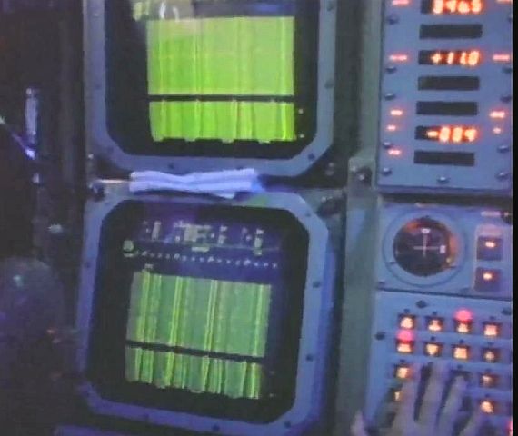 (上與下)俄亥俄級的BQQ-6聲納顯示幕,此為服役初期的狀態,仍為CRT顯示器。