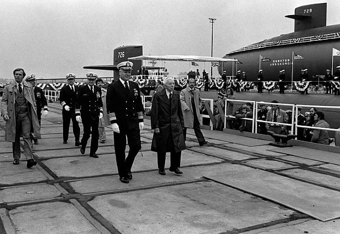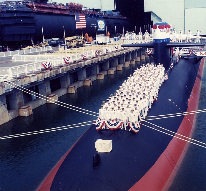 在1979年4月7日俄亥俄級四號艦喬治亞號(USS Georgia SSBN-729)安放龍骨典禮(中間只有一個船段者)。