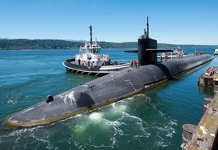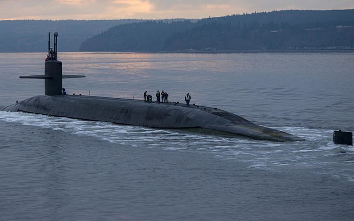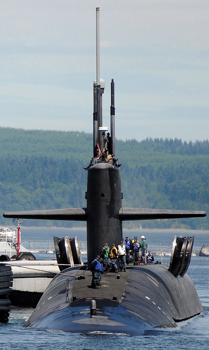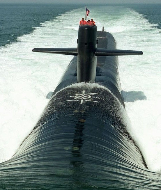 從後方看一艘俄亥俄級SSGN。背部搭載兩個DDS艙。