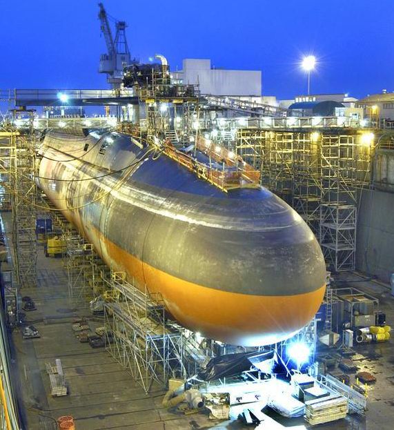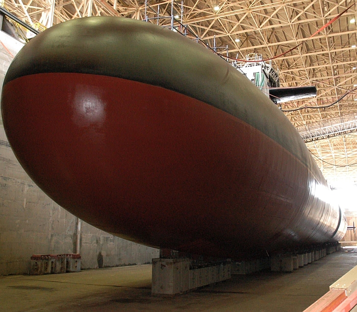 俄亥俄級的賓夕法尼亞號(USS Pennsylvania SSBN-735)在通用電船位於格魯頓(Groton)的船廠建造時