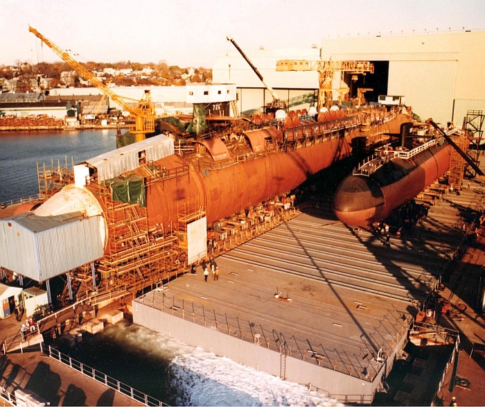 Point)以及格羅頓(Groton)的船廠設施,並首度引進模組化建造技術,也就是將艦體預先區分成多個單元來建造同時完成內部的初步艤裝,然後將單元以及內部設備組裝成分段,最後把幾個分段合攏成艦體。