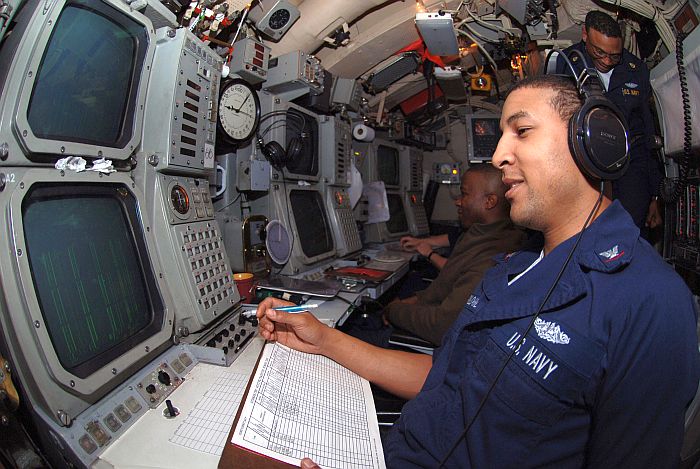 俄亥俄級佛羅里達號(USS Florida SSBN-728)的BQQ-6聲納系統的顯示器,仍為最初早期的顯控台構型。