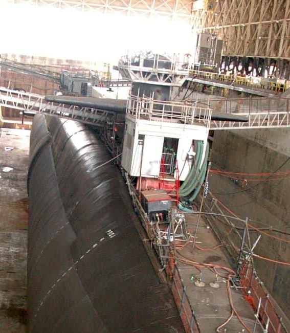 俄亥俄號進塢改裝成SSGN時的畫面。