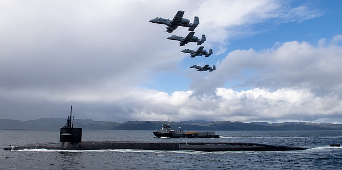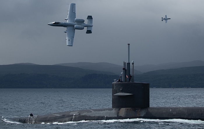美加邊境的胡安.德.富卡海峽(Strait of San Juan de Fuca)出海,一隊美國空軍A-10攻擊機前來伴護。